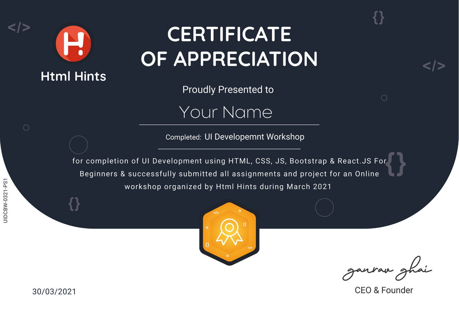 Gaurav As A Mentor And Teacher Is 1000% Best With All The Transparency. Loved the way he teaches and all the tips and tricks and guidance about the career and motivation at its best. Highly Recommend to join HTML Hints Community. No Doubt You will learn everything about web development from scratch to intermediate and advance level. Power And Respect To Gaurav Bhai.